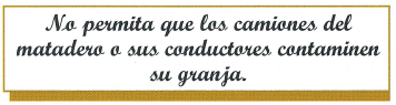visitar la granja y que también siempre visite su granja primero. Usted también debe tomar precauciones contra la contaminación proveniente de estos camiones estableciendo una zona de carga de cerdos segura y no permitiendo al chófer que entre a sus edificios.