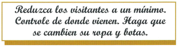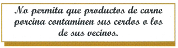 contaminados, como granjas porcinas, mataderos, compraventa de animales o salas de necropsia. Si es así, no los deje entrar. Haga firmar a sus visitantes un libro que diga que ellos no han estado en lugares así.