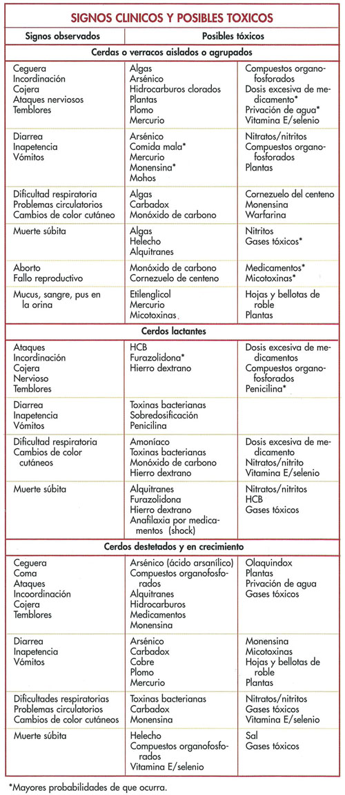 Signos clínicosEn la intoxicación aguda los cerdos vomitan, están deprimidos, pierden la función locomotora, desarrollan insuficiencia renal y mueren. La muerte puede ocurrir en 12-24 horas y es a menudo el único signo observado.