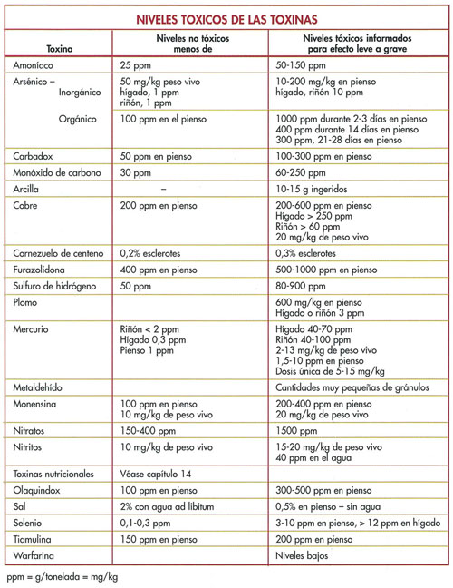 períodos largos de tiempo. Si los niveles de ingesta exceden 1 mg/kg puede haber mortalidad.