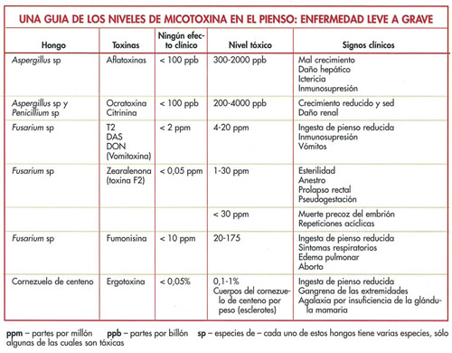 - Una vez que las micotoxinas se han desarrollado en el pienso no hay ningún método que pueda destruirlas. Sin embargo, sus efectos pueden ser mitigados moliendo nuevamente el pienso y mezclándolo con una fuente alternativa en una proporción de 1 :1 O usándose p'ara alimentar el cebo previa prueba.