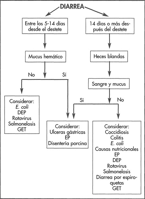 DiagnósticoSe fundamenta en los signos clínicos y en la exclusión de otras causas de diarrea, especialmente de la disentería porcina. También se requiere el examen coprológico en el laboratorio junto con exámenes postmortem y estudios de laboratorio en cerdos que no recibieron tratamiento.