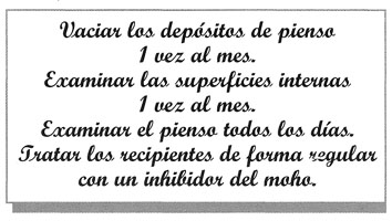 • Controlar los recipientes de pienso. ¿Son impermeables?