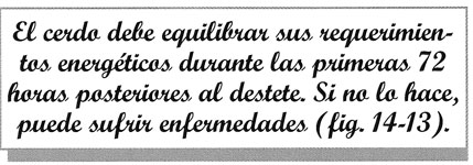 Deben disponer de agua 6 horas después de nacer, en una fuente poco profunda o en un pesebre, porque la ingesta de agua es vital en esta etapa. La figura 14-17 muestra un tipo de plato eficiente que se emplea para colocar iniciador y agua en la paridera. Es interesante observar que muchos lechones beben cantidades pequeñas de agua al cabo de 24 horas cuando tienen la oportunidad de hacerlo. Los bebederos tipo chupete no son adecuados para los lechones. El consumo de agua de los lechones durante la lactación también depende de la temperatura de la paridera, ya que a 28ºC (82ºF) los requerimientos de agua exhiben un incremento notorio en las áreas cálidas de los nidos.