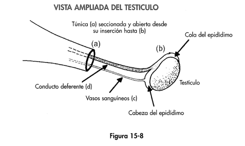 Elevar cada testículo hasta la superficie sosteniéndolo entre el pulgar y los dedos índice y medio (fig. l 5-9A).