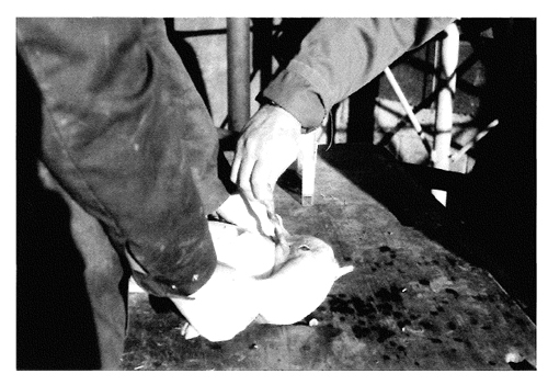 - Identificar el cerdo y prepararlo como para una castración normal. Es conveniente realizar este procedimiento entre las 3 y 4 semanas de vida. Realizar bajo la supervisión del veterinario.